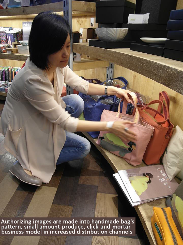 Authorizing images were made into pattern of handmade Mino bags, which are launched at the 2013 Taipei International Book Exhibition at the beginning of this year. The avid readers of Xinyu Sun (Joyce Sun) got to grab the handmade bags. First of nearly 50 bags had been snapped up.